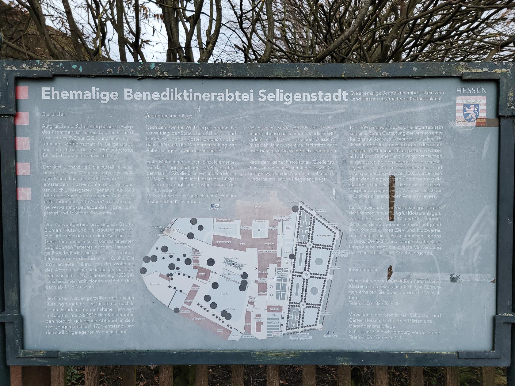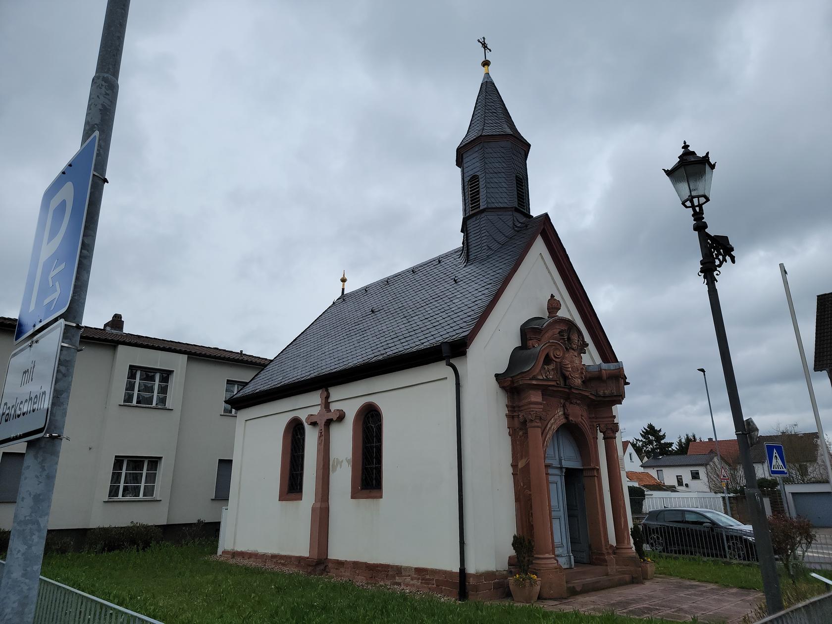 A stone’s throw from one of the public parking places is the Wendelinuskapelle. A small chapel honoring Saint Wendel, patron saint of farmers and shepards. Built in the late 1800s it stands on the place of a former Heiligenhäuschen. The Baroque doorway is some 160 years older than the chapel itself and was taken from the west portal of the Seligenstadt Basilica, when it was renovated in 1868. The inside is rather plain and in need of some repair.